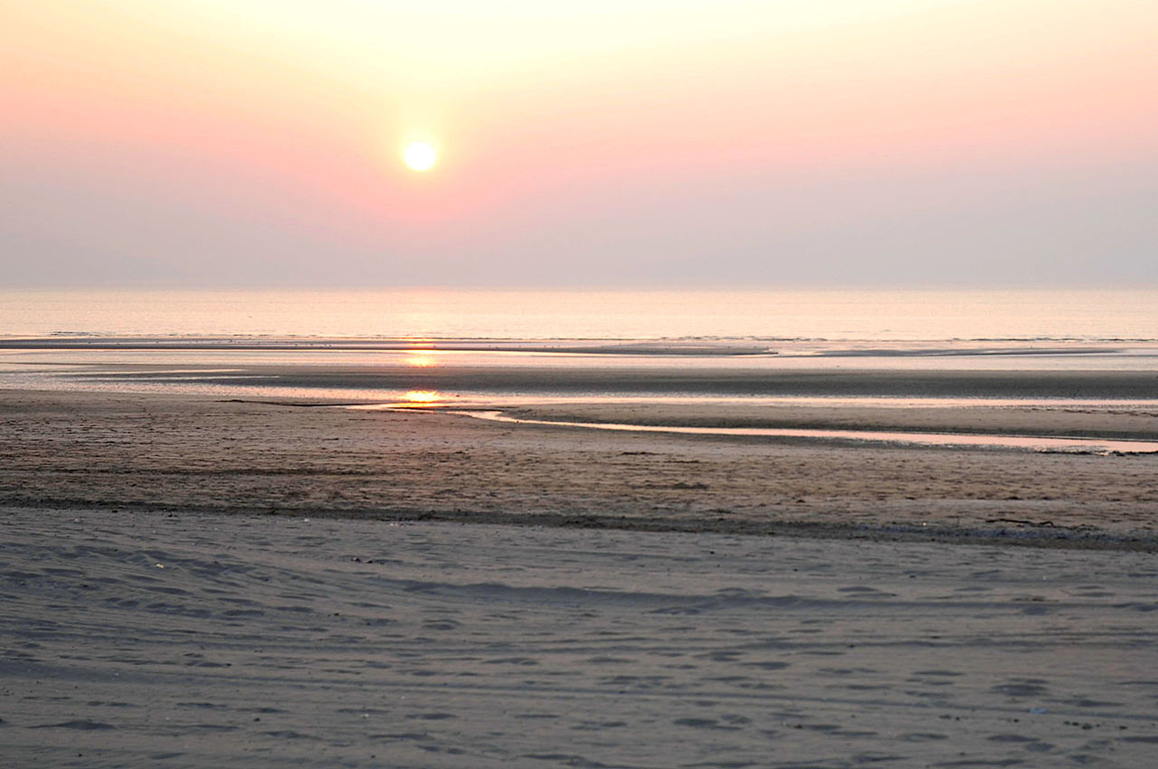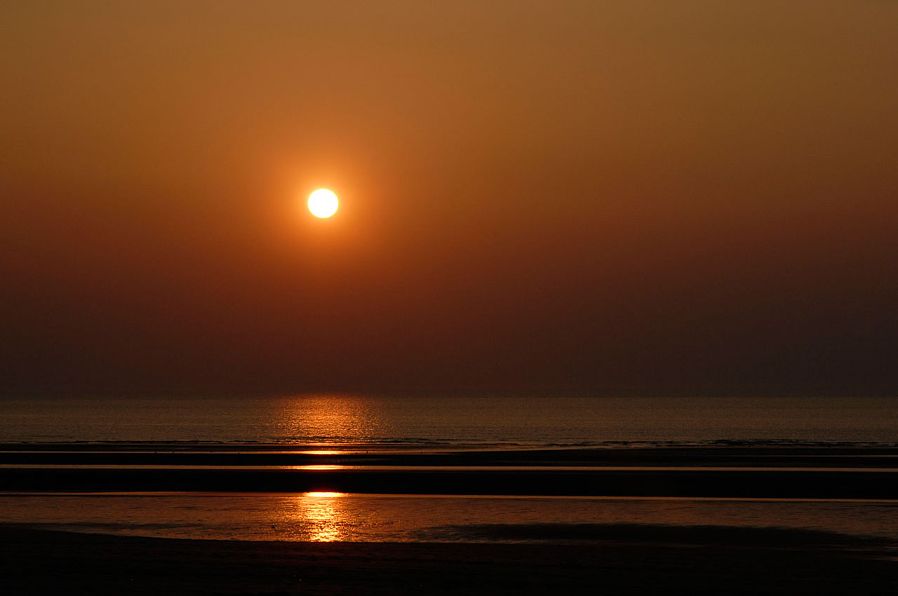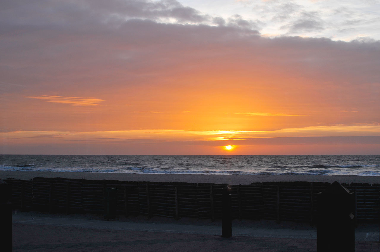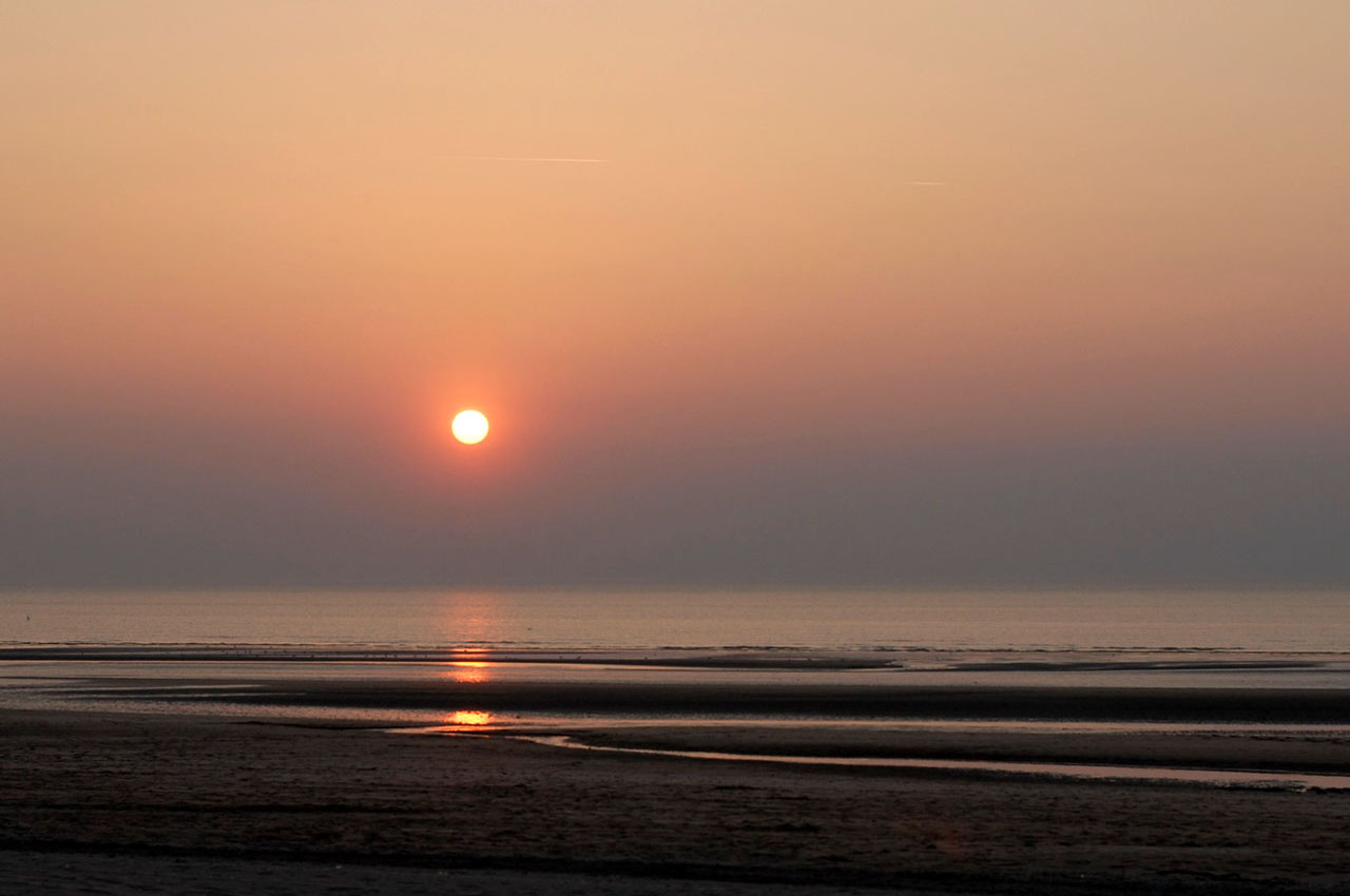Un coucher de soleil mémorable sur la grande plage entre Deauville et Bénerville-sur-mer.